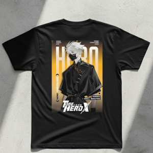 This design features a high-impact, cinematic graphic printed on the back, capturing Ghostblade’s calm intensity and sleek, modern attire. The dark tones and gold accents make this tee a guaranteed head-turner. It’s more than a shirt; it’s a statement about redefining heroism.