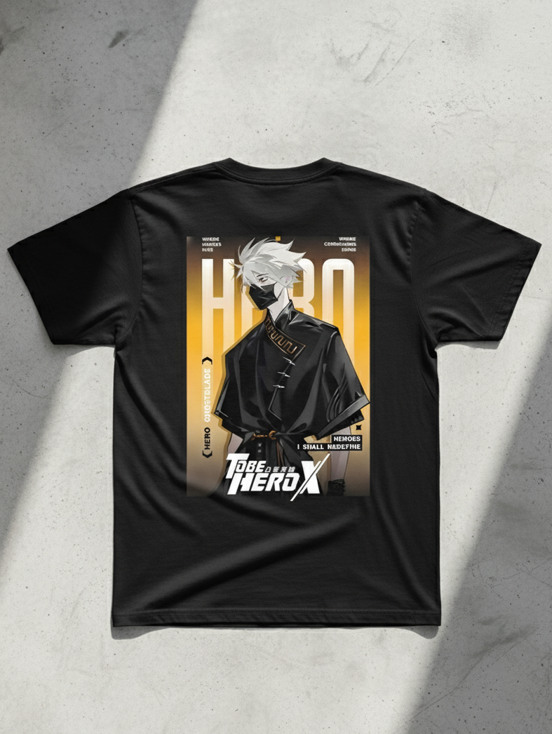 Unleash the shadow style of the assassin Hero Ghostblade with this visually stunning T-shirt from the Tobe Hero X universe!